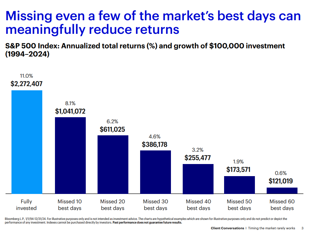 You need a plan that keeps you invested when it feels uncomfortable because that’s when the market’s most important days tend to happen.