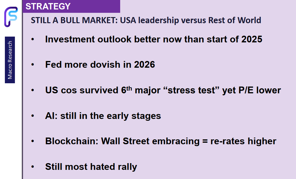 While history offers some perspective, forward-looking research also matters. Tom Lee of FundStrat has been one of the most accurate strategists throughout this cycle, and his latest update leans bullish once again: