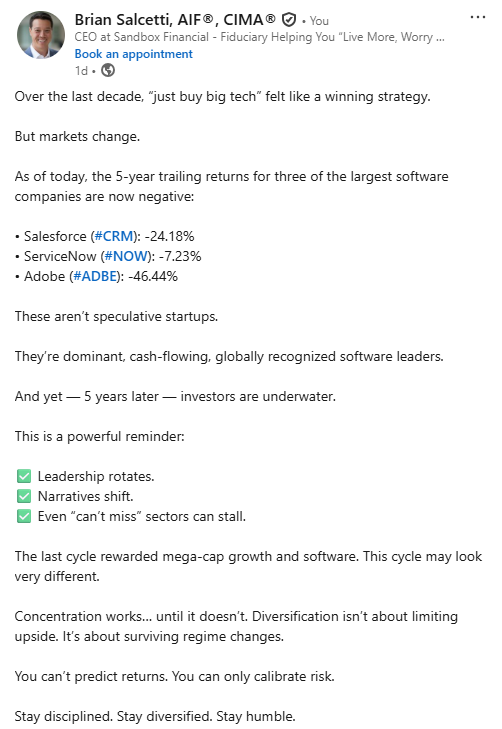 As we frequently remind our clients — volatility is normal. It’s the price of admission for long-term growth. Our job isn’t to react to every headline. It’s to stay disciplined, focused, and aligned with your plan.