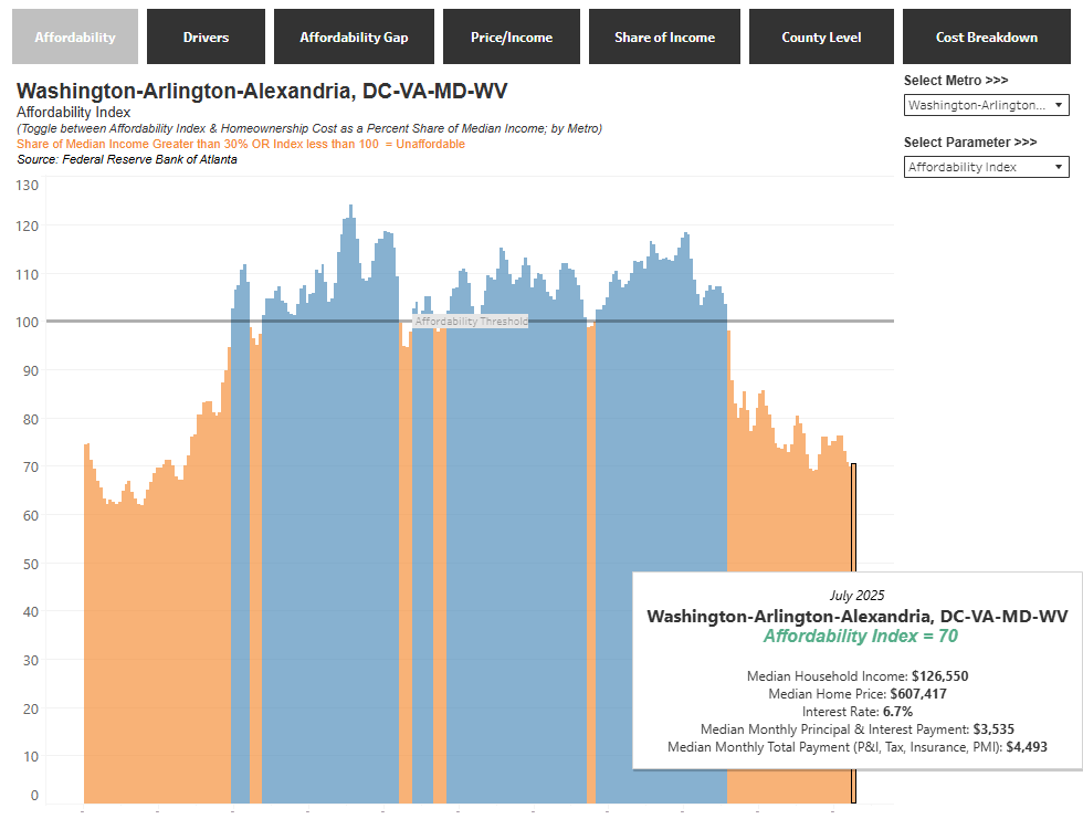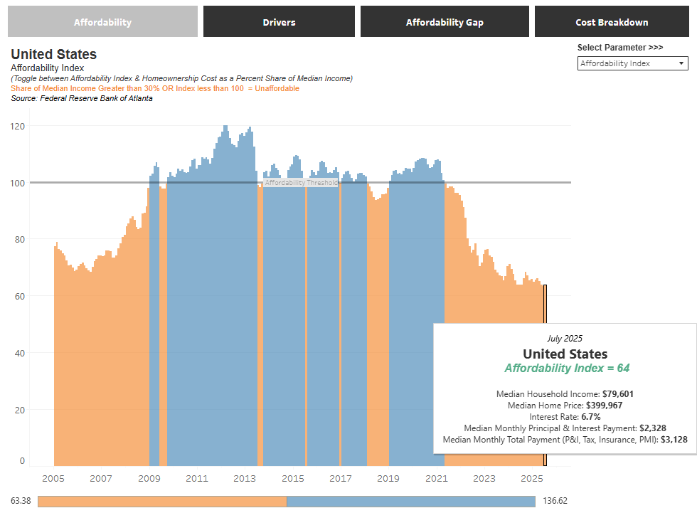 Affordability Index: 70 (anything below 100 = unaffordable)
