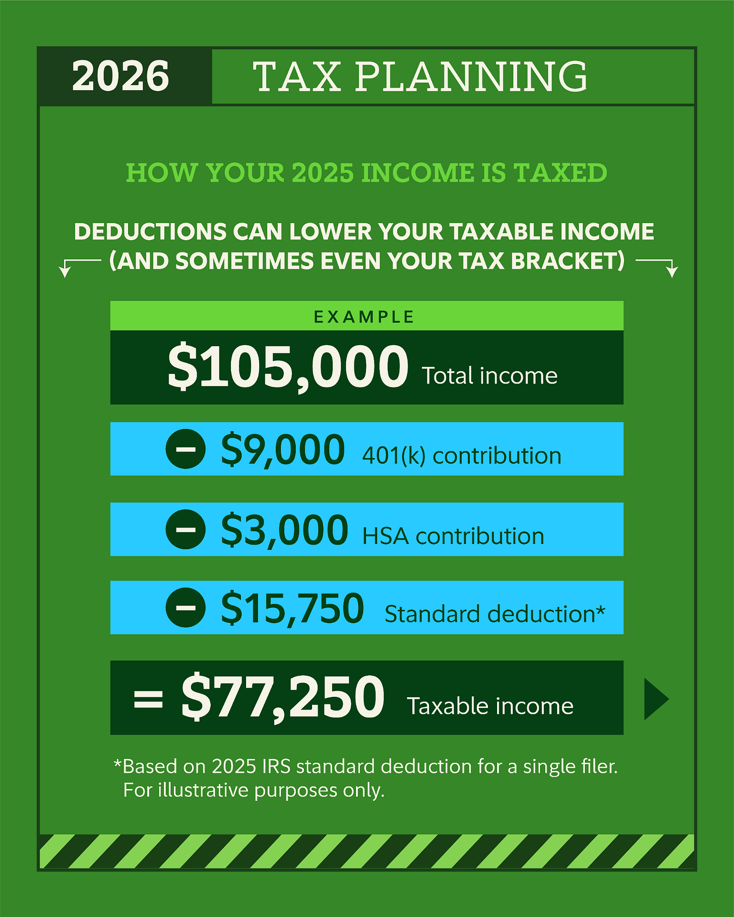 In this example, you earned $105,000 but the IRS only taxes $77,250.