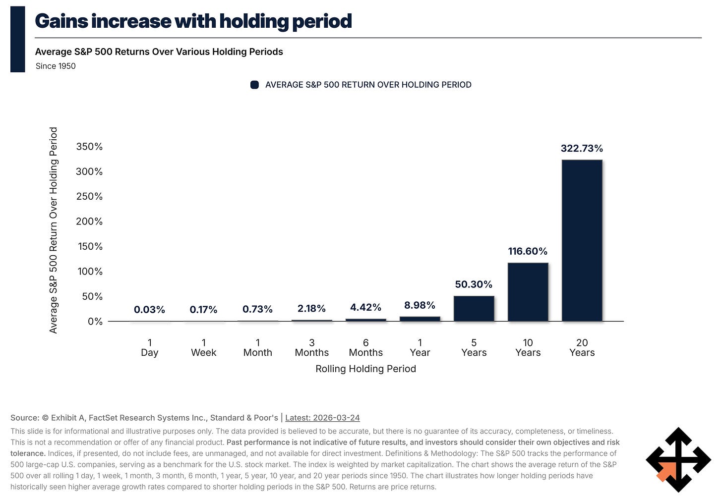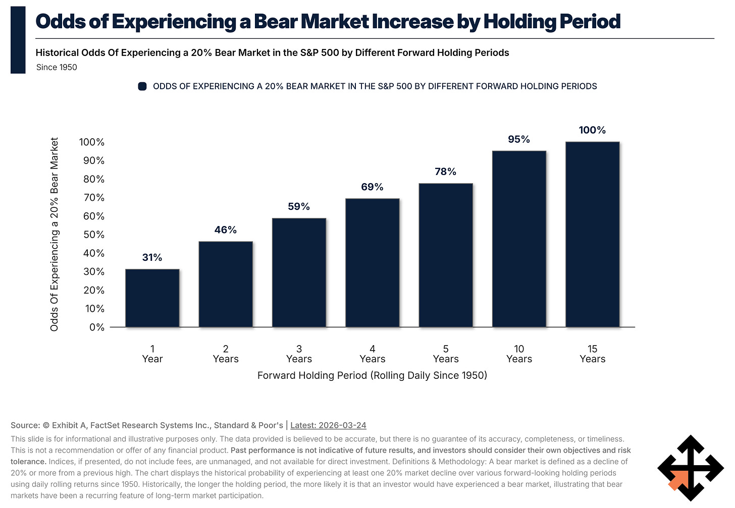 Long-term investing improves outcomes but guarantees volatility.