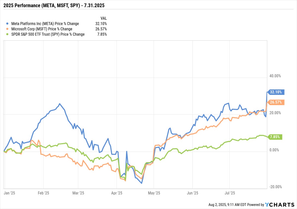 For investors, what matters most is performance and if you invested in and owned Meta and Microsoft you have seen significant outperformance over the S&P 500 index YTD in 2025.